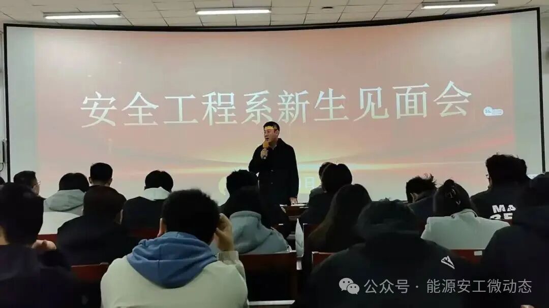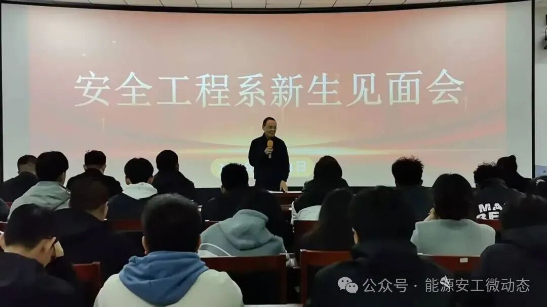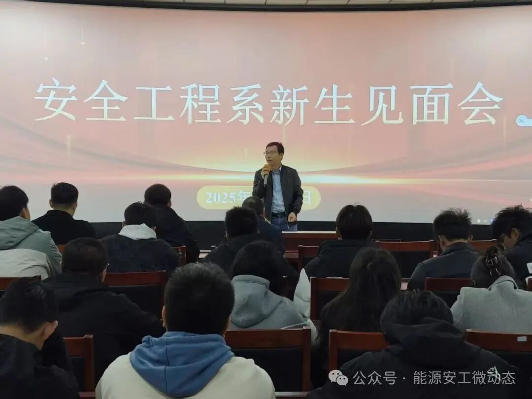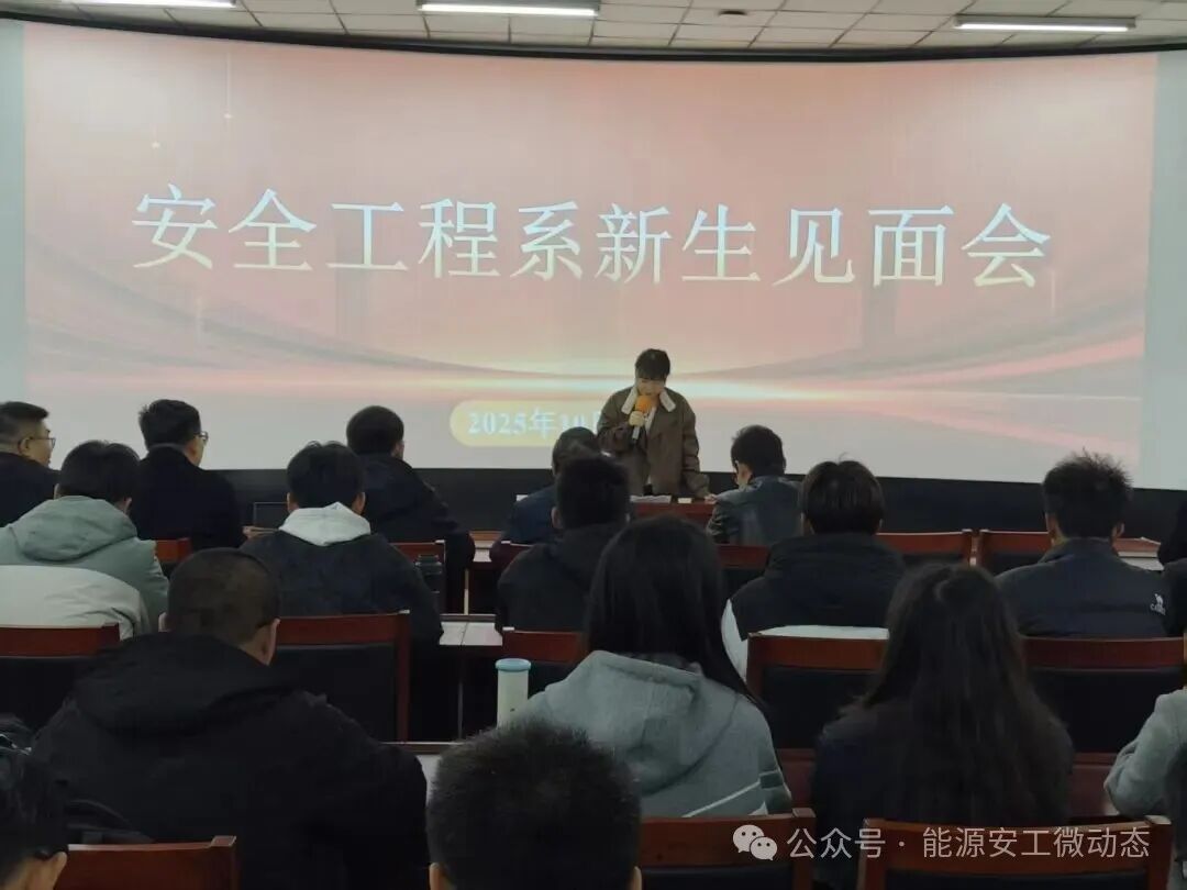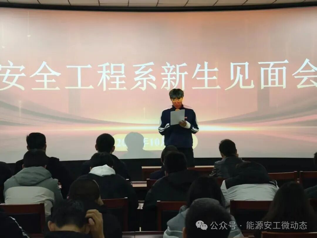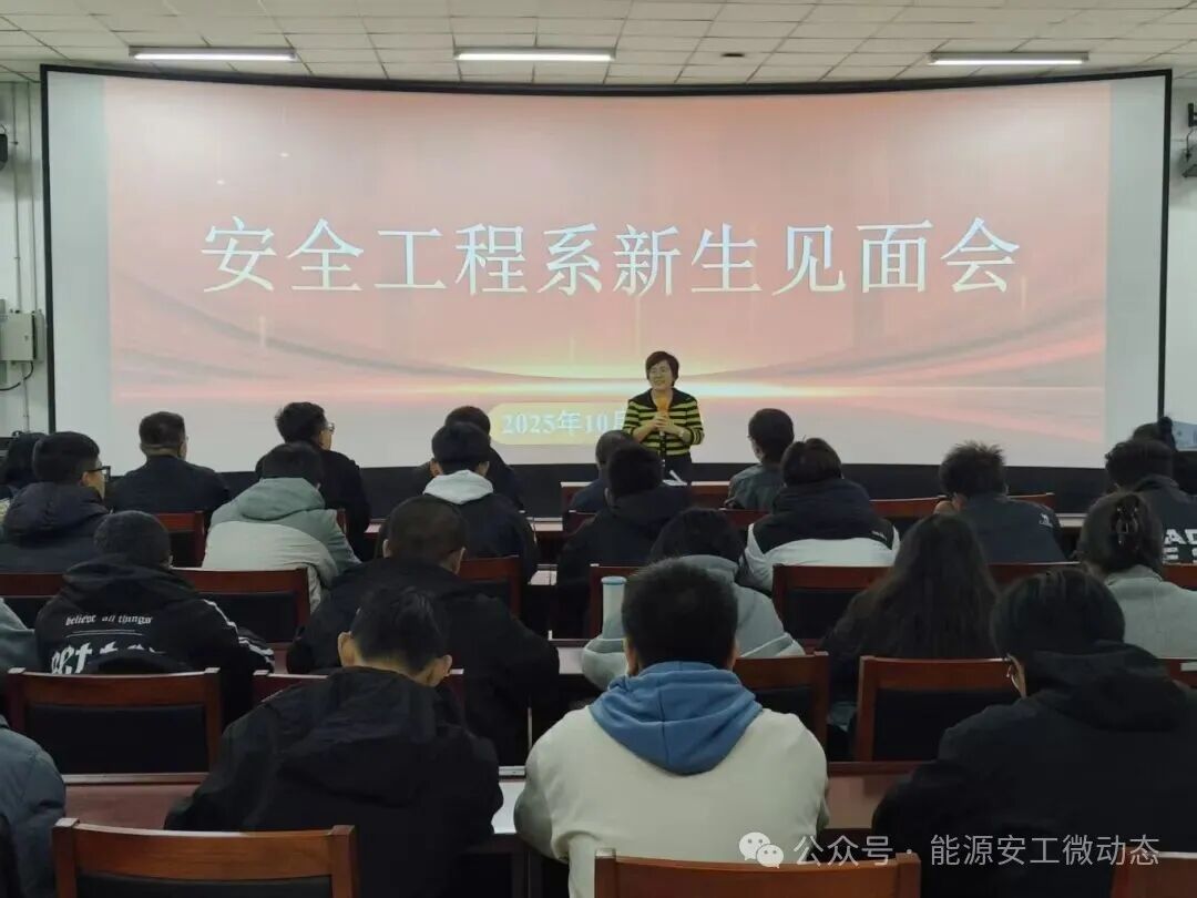 2025年10月21日下午,山西能源学院安全工程系在实训中心仿真模拟实验室教室召开新生见面会。出席本次会议的有郭辉书记、李鹏主任、赵国飞副主任及系部其他教师。首先张倩瑶老师为同学们介绍了与会成员并对同学们的到来表示热烈的欢迎。