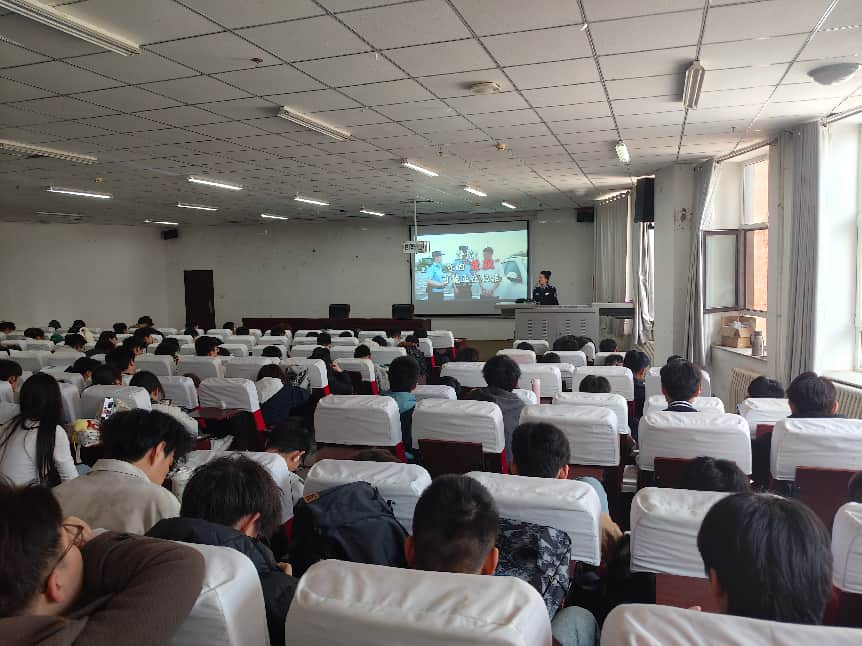 为开展好2026年春季开学安全教育第一课,提高同学们的安全防范意识,学工部与保卫部于2026年3月19日下午4时,特别邀请晋中市高校公安分局指挥中心的马跞之警官来院,在综合楼阶梯教室为同学们举办了一场“提高防范意识、预防电信诈骗”为主题的讲座。