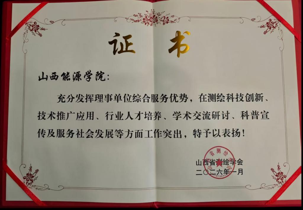 2026年1月,山西省测绘学会印发了《关于对2025年工作突出的理事单位表扬的通知》(晋测学发〔2026〕4号),对山西能源学院等19家工作表现突出的理事单位予以表扬。