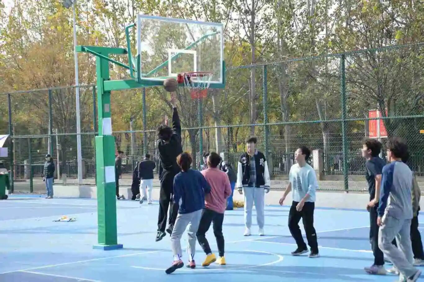 为增强学生体质,增进同学之间友谊,活跃校园氛围,电气与控制工程系于10月18日至11月2日在我校大篮球场开办秋日篮球赛,各级同学积极参与。