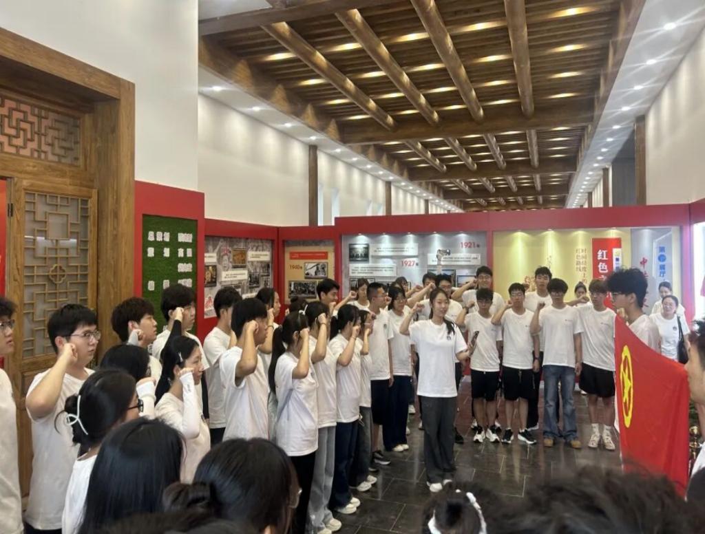 接着,同学们来到了石膏山红色教育基地,在鲜艳的团旗面前,全体成员庄严宣誓,誓词铿锵有力,字字千钧,仿佛将大家带回那段激情燃烧的岁月,深刻感受到共青团员的责任与使命。
