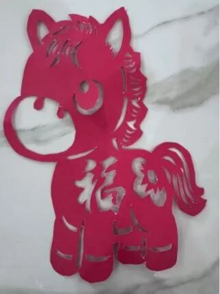 剪一抹窗花红,刻一匹福马腾。撷取红纸余料,以剪刀为笔,在薄纸间剪刻奔马造型。线条婉转间尽显传统剪纸的工艺美感,奔马驮福的纹样紧扣马年主题。以非遗剪艺寄新春期许,让指尖巧思承载年味,愿新岁策马扬鞭,万事顺遂。
