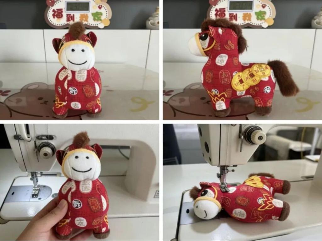 拾旧岁红绸之余温,籍缝纫机之巧思。针脚绵密,绣织新春意趣;布头焕新,化作瑞马身姿。于方寸布艺间,尽显循环之韵,以手作之诚,遥寄马年顺遂安康、福运绵长之愿。