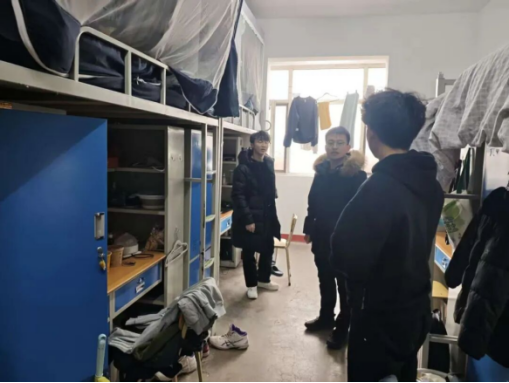 为认真做好新学期各项学生工作,确保学生的生活环境安全、舒适,及时了解学生的生活状态和需求,资源与环境工程系党总支副书记任丽霞、团委学工办副主任李晓建、专职辅导员田晓晖在学生返校当日走进学生宿舍,开展了一次特别的“慰问之旅”。全体辅导员在开学一周内陆续走访学生宿舍,为学生送去新学期的第一份关怀。