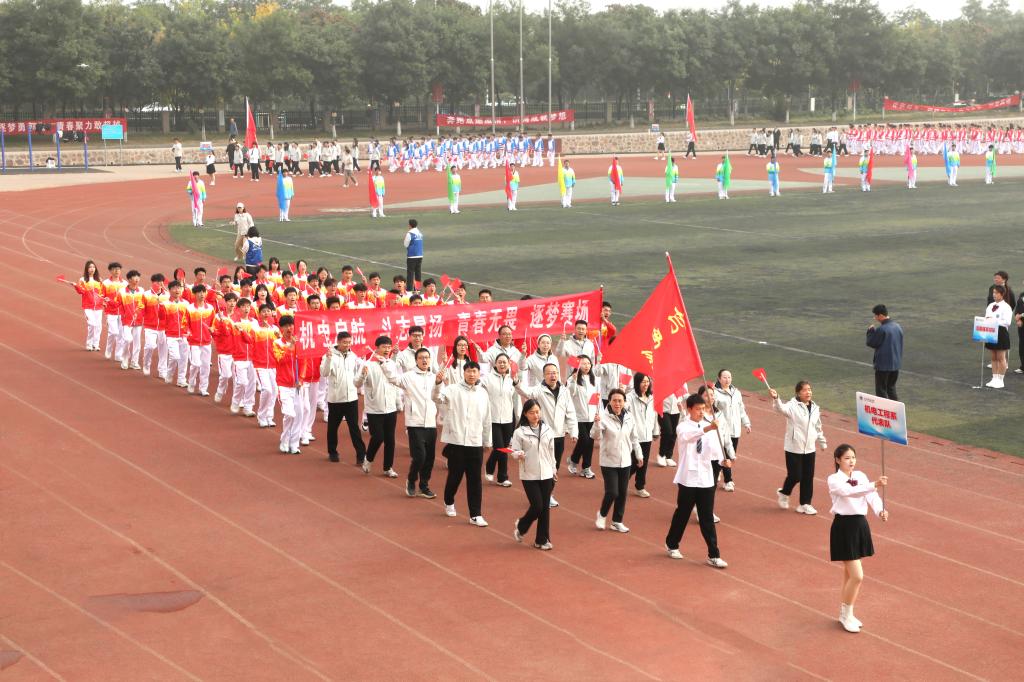 伴随着激昂的运动员进行曲,国旗方阵、彩旗方阵、花束队、裁判员和教职工代表队、各系代表队等10多个方阵迈着矫健的步伐,喊着嘹亮的口号,精神抖擞地依次步入运动场,充分展示了我校师生良好的精神风貌。