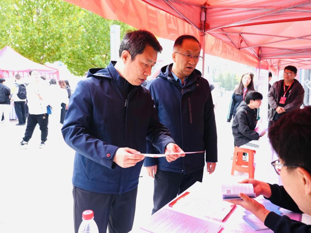 10月15日,我校“能源启新程,职场筑未来”2026届毕业生秋季校园暨“宏志助航计划”双选会在南广场成功举办。学校党委书记冯国瑞、党委副书记、院长桑楠高度重视毕业生就业工作,关心并指导双选会的筹备与组织工作,党委副书记曲晋山亲临现场予以指导,学生工作部负责人、各系党政负责人、党总支副书记及毕业班辅导员全程参与,合力保障双选会顺利开展。