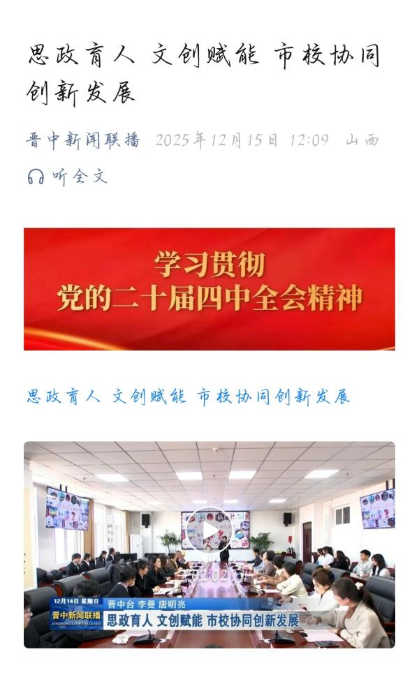 此次活动打破传统思政教育边界,形成校地协同育人新范式,其创新实践与育人成果获山西日报、晋中新闻联播、晋中日报报道,既是对我校思政教育工作的充分肯定,也进一步扩大了学校的社会影响力,为学校思政品牌建设积累了宝贵经验。