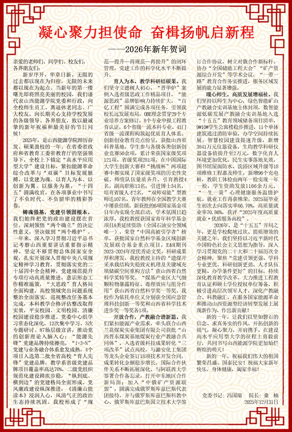 ——山西能源学院2026年新年贺词