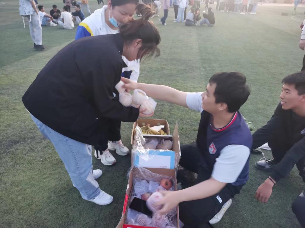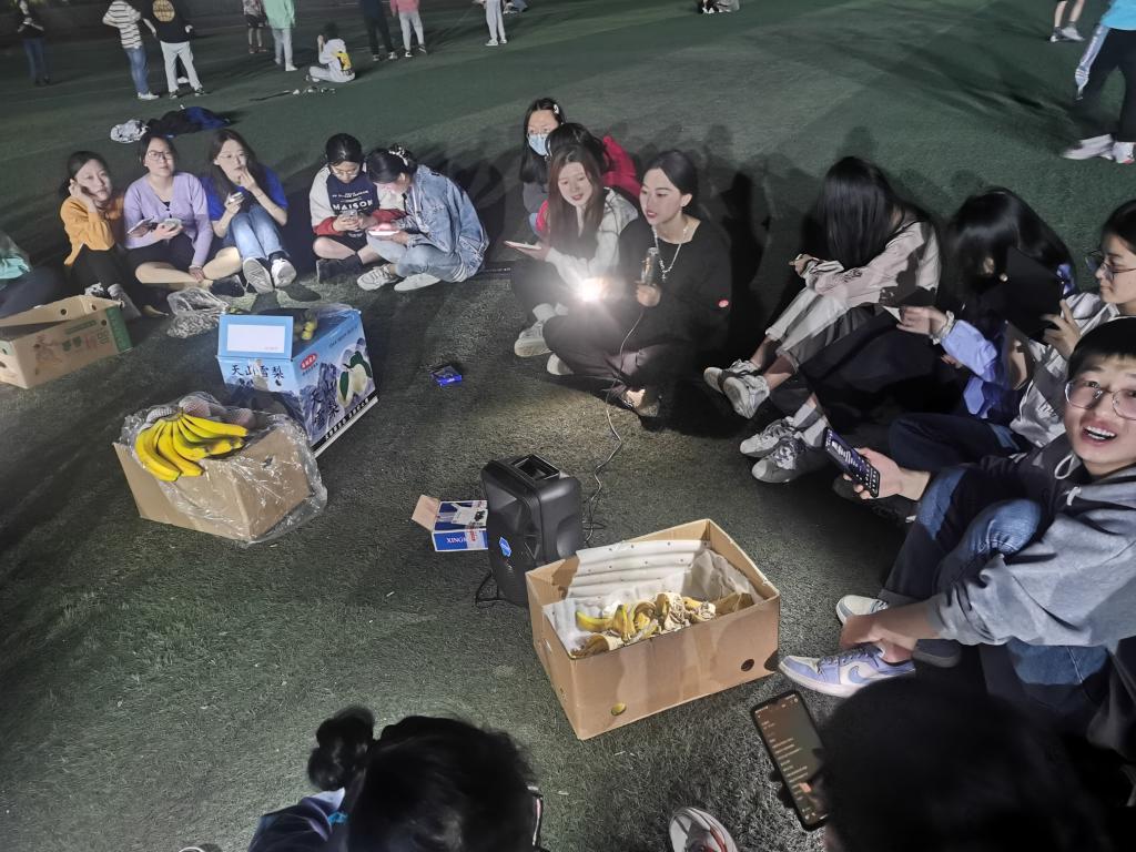 傍晚时分,能经1903、1904班的同学在操场集合,由班委为大家分发了水果,随后同学们带来了音响设备,在操场上一起唱歌。