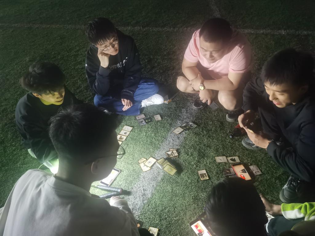 能经2003班的同学们傍晚7点在操场集合,在多数同学的意愿之下分为小组,大家共同组织了踢毽子、打羽毛球、跳大绳、三国杀等游戏,在运动的过程中培养更深厚的友情。
