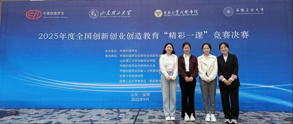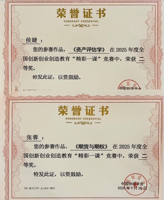 近日,2025年度全国创新创业创造教育“精彩一课”竞赛决赛在山东理工大学圆满落幕。本次大赛由中国创造学会主办,已列入全国普通高校教师教学竞赛清单,是全国创新创业创造教育领域的高水平权威赛事。经济系四位参赛教师凭借扎实的教学功底、创新的教学设计以及出色的现场表现,在决赛中脱颖而出,喜获佳绩。其中,侯婕老师(参赛课程《资产评估学》)、张蓉老师(参赛课程《期货与期权》)荣获全国决赛二等奖;朱丽丽老师(参赛课程《宏微观经济学虚拟仿真实验》)、连星老师(参赛课程《金融学》)荣获全国决赛三等奖。