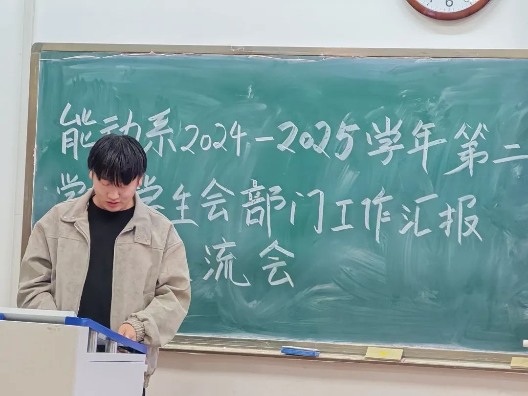 为持续加强能源与动力工程系学生工作队伍建设,推动学生组织队伍管理水平不断提升,全方位增强学生会干部的服务理念和工作效能,3月13日,能动系分团委学生会部门负责人工作汇报交流会于笃学楼110教室举行。出席本次会议的有系党总支副书记杨刚、团委学工办副主任贾文娟、专职辅导员高志超以及系学生会负责人。