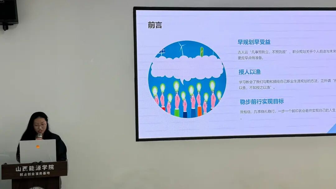 比赛现场气氛热烈,选手们依托精心制作的PPT,系统阐述了各自的职业目标与发展路径。他们的规划逻辑严谨、步骤清晰,充分体现出对未来的思考。评委们专注聆听每位选手的陈述,并在提问环节中提出了诸多富有洞察力的问题。面对提问,选手们沉着应答,展现出对职业规划的独到见解与深刻把握。评委们的精准点评与中肯建议,为选手提供了宝贵反馈,助力他们在未来的职业道路上方向更明、步履更坚。