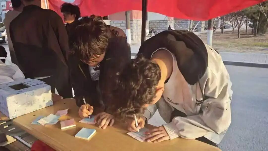 活动现场,同学们齐聚志愿摊位,手持纸笔,在便笺上认真书写践行雷锋精神、乐于助人的点滴小事。一张张朴素便笺,凝聚起温暖向善的蓬勃力量,承载着青年学子的初心使命与责任担当。