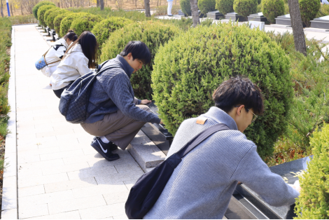 党课结束后,五位学员依次分享了来自山西的红色革命故事,大家在聆听与交流中进一步增强了对革命先辈的崇敬与缅怀之情。随后,学员们怀着崇敬之情来到烈士墓前,认真擦拭每一块墓碑,用朴素的方式寄托哀思,致敬英雄。