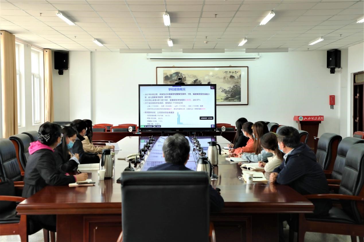 培训会后,冯国瑞副院长(主持行政工作)结合我省疫情变化情况,就继续从严从紧从细做好我校疫情防控工作提出要求。他强调,全校各部门要认真学习贯彻此次视频培训会的精神和要求,增强我校疫情防控能力。同时,进一步加强学生日常教育管理服务,做好疫情防控应急预案和演练工作,确保师生健康安全。