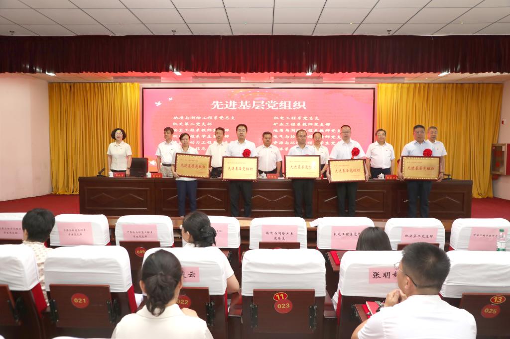 大会在庄严的国歌声中拉开序幕,党委副书记曲晋山宣读了《关于表彰优秀共产党员、优秀党务工作者和先进基层党组织的决定》,党委委员、纪委书记、监察专员张志力宣读了2025年“光荣在党50年”纪念章获得者名单。校领导分别为“优秀共产党员”“优秀党务工作者”和“先进基层党组织”代表颁奖,党委书记冯国瑞为“光荣在党50年”纪念章获得者颁发了纪念章。冯国瑞在讲话中代表校党委向受表彰的先进集体和优秀个人表示热烈的祝贺,向全校广大党员致以节日的问候和崇高的敬意。他指出,中国共产党成立104周年以来,风雨兼程,壮歌以行,新民主主义革命时期,开天辟地,完成救国大业;社会主义革命和建设时期,改天换地,完成兴国大业;改革开放和社会主义现代化建设新时期,翻天覆地,推进富国大业;从党的十八大召开至今的中国特色社会主义新时代,惊天动地,实现强国大业。惟其艰巨,所以伟大;惟其艰巨,更显荣光。